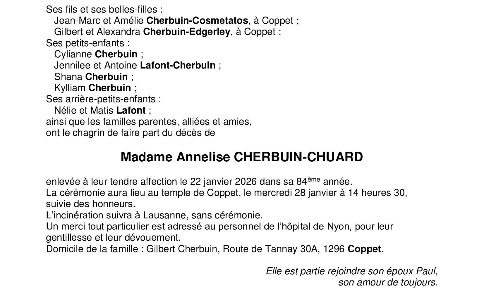 Madame Annelise CHERBUIN