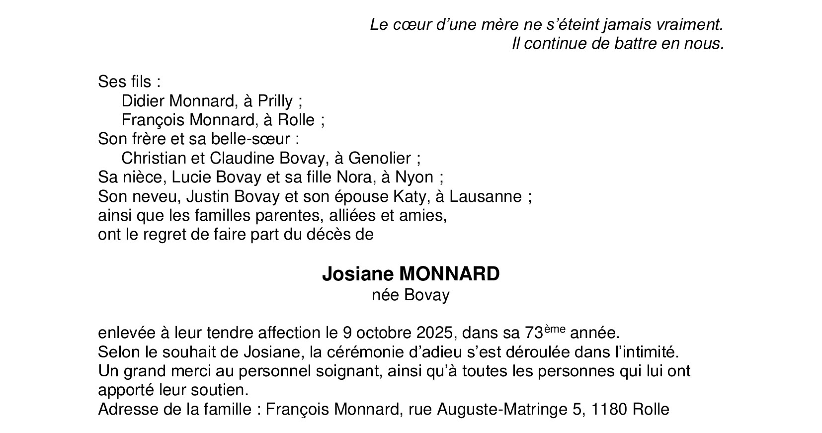 Madame Josiane MONNARD