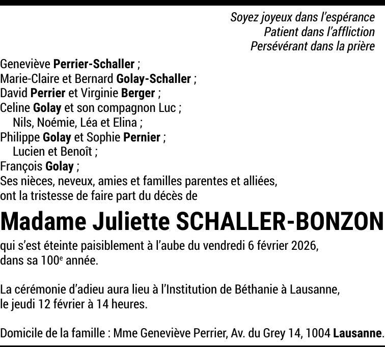 Madame Juliette SCHALLER-BONZON