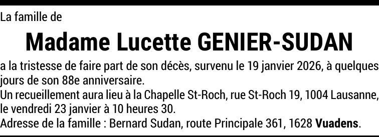 Madame Lucette GENIER-SUDAN