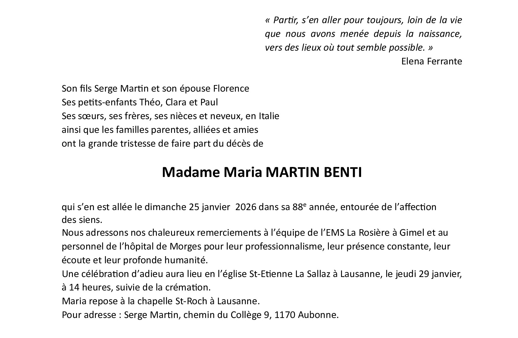 Madame Maria MARTIN BENTI