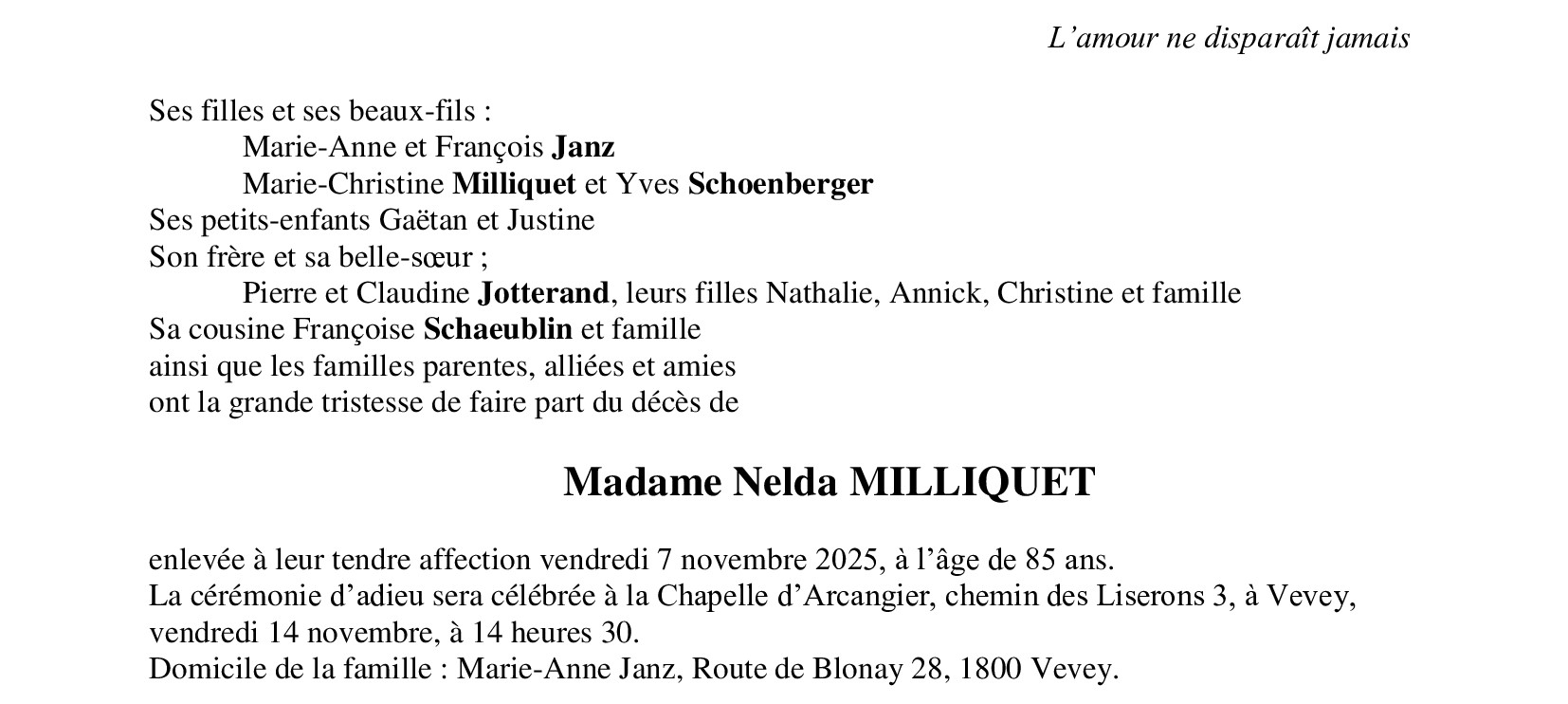 Madame Nelda MILLIQUET