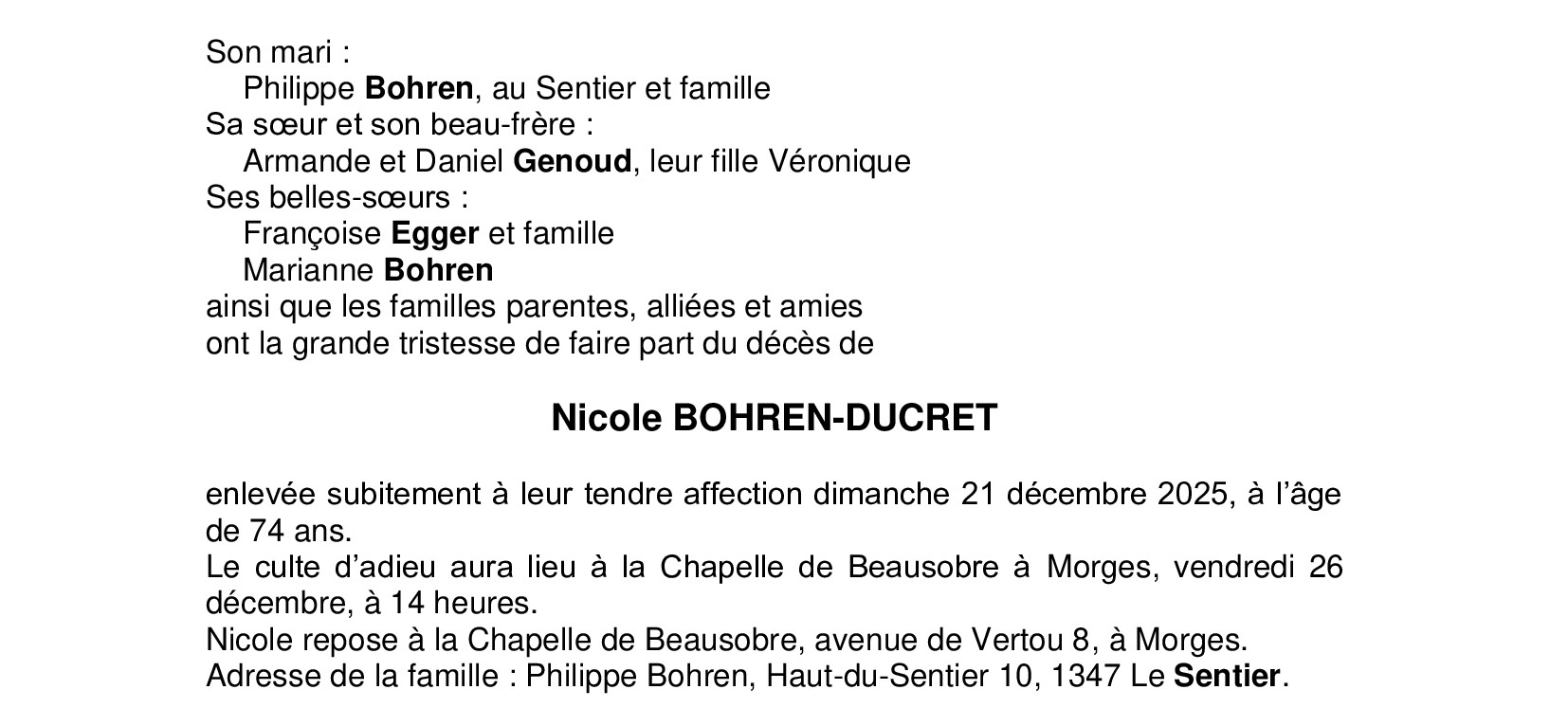 Madame Nicole BOHREN