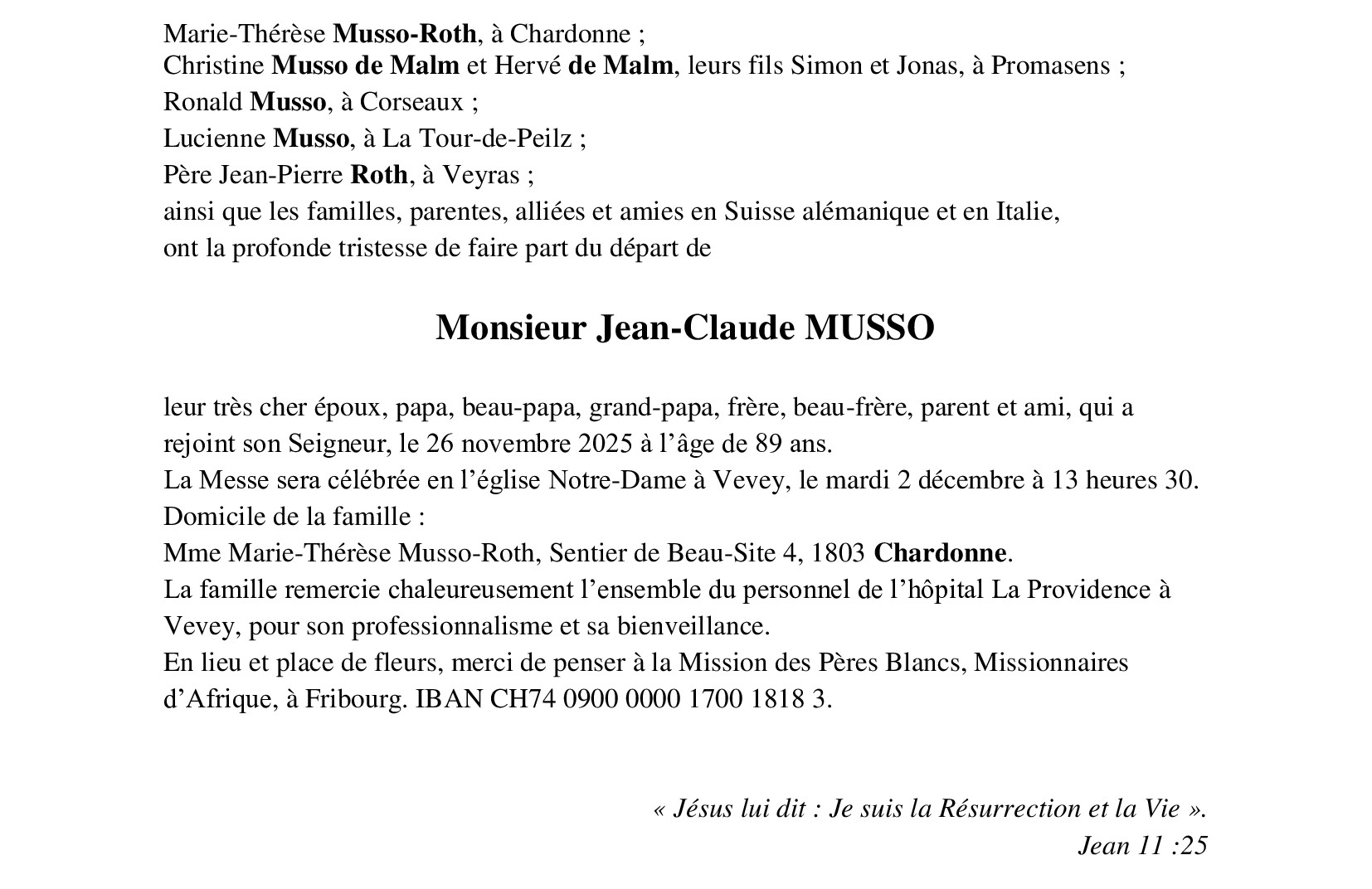 Monsieur Jean-Claude MUSSO 20 oct. 1936 - 26 nov. 2025 Avis mortuaire PFG Partager sur: Galerie PreviousNext PreviousNext