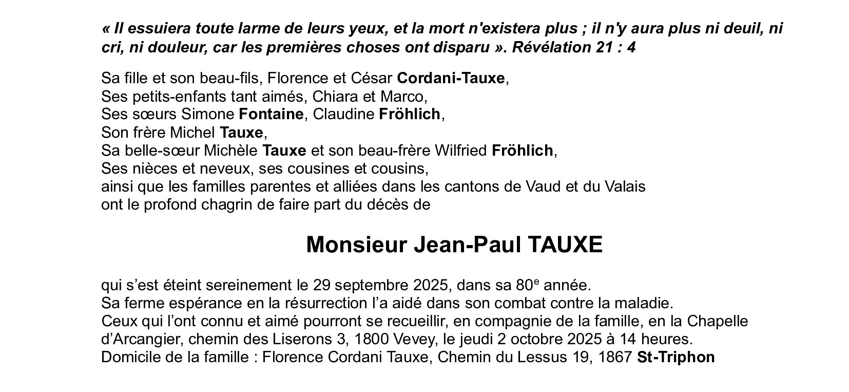 Avis mortuaire PFG