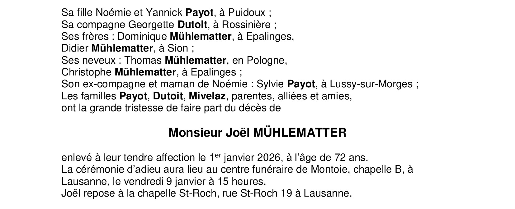 Monsieur Joël MÜHLEMATTER
