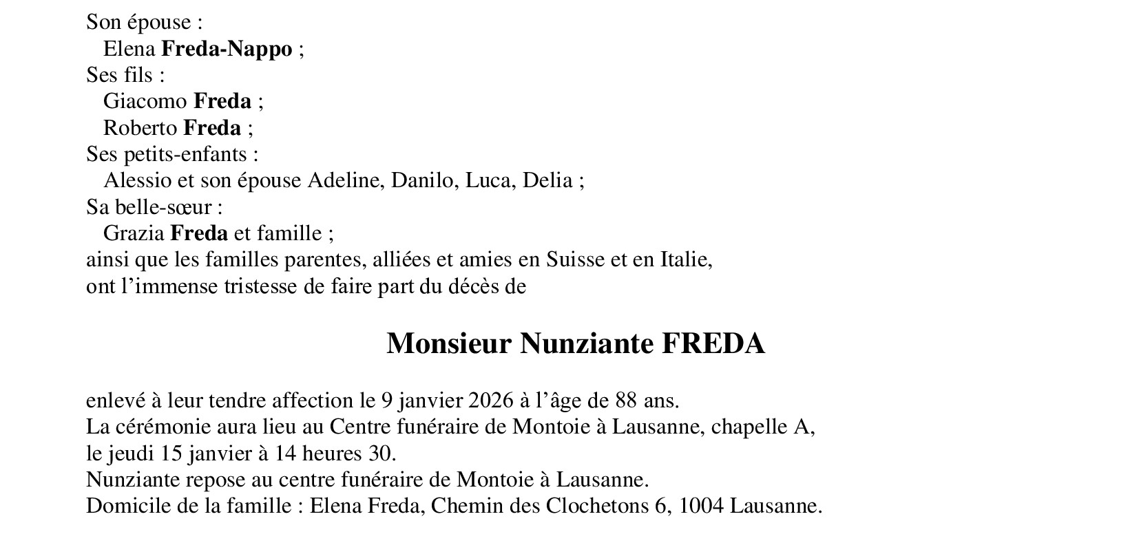 Monsieur Nunziante FREDA