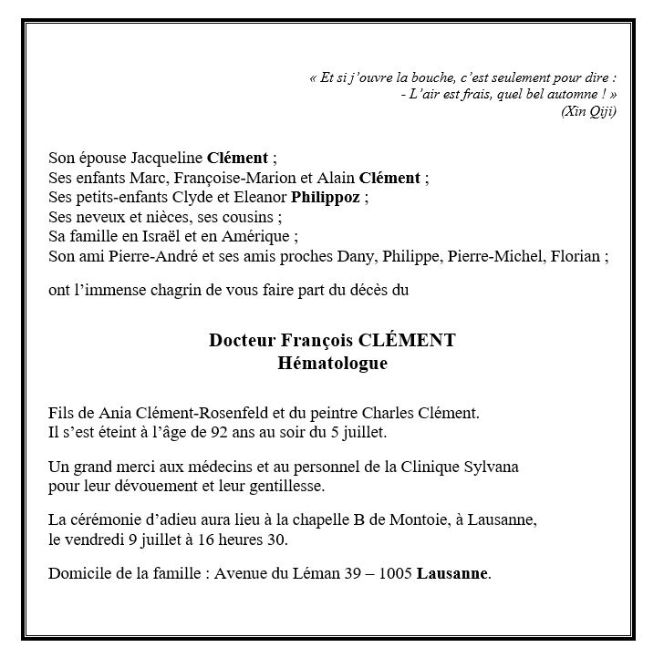 François CLÉMENT 21 fév. 1929 - 05 juil. 2021 Avis mortuaire PFG Télecharger PDF Partager sur: Galerie PreviousNext PreviousNext