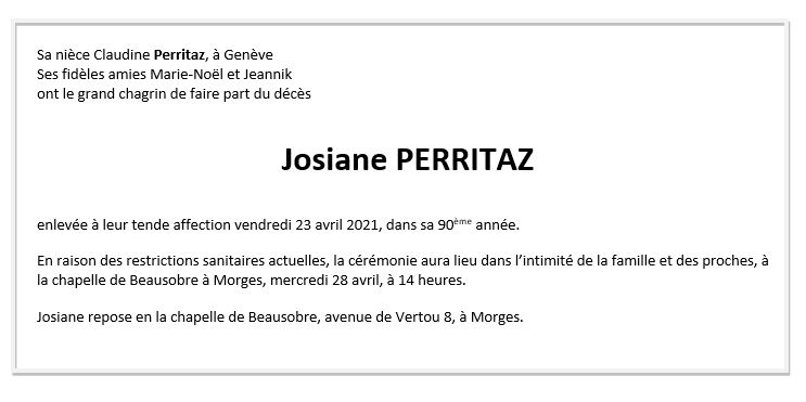 Josiane PERRITAZ 20 mai. 1931 - 23 avr. 2021 Avis mortuaire PFG Télecharger PDF Partager sur: Galerie PreviousNext PreviousNext